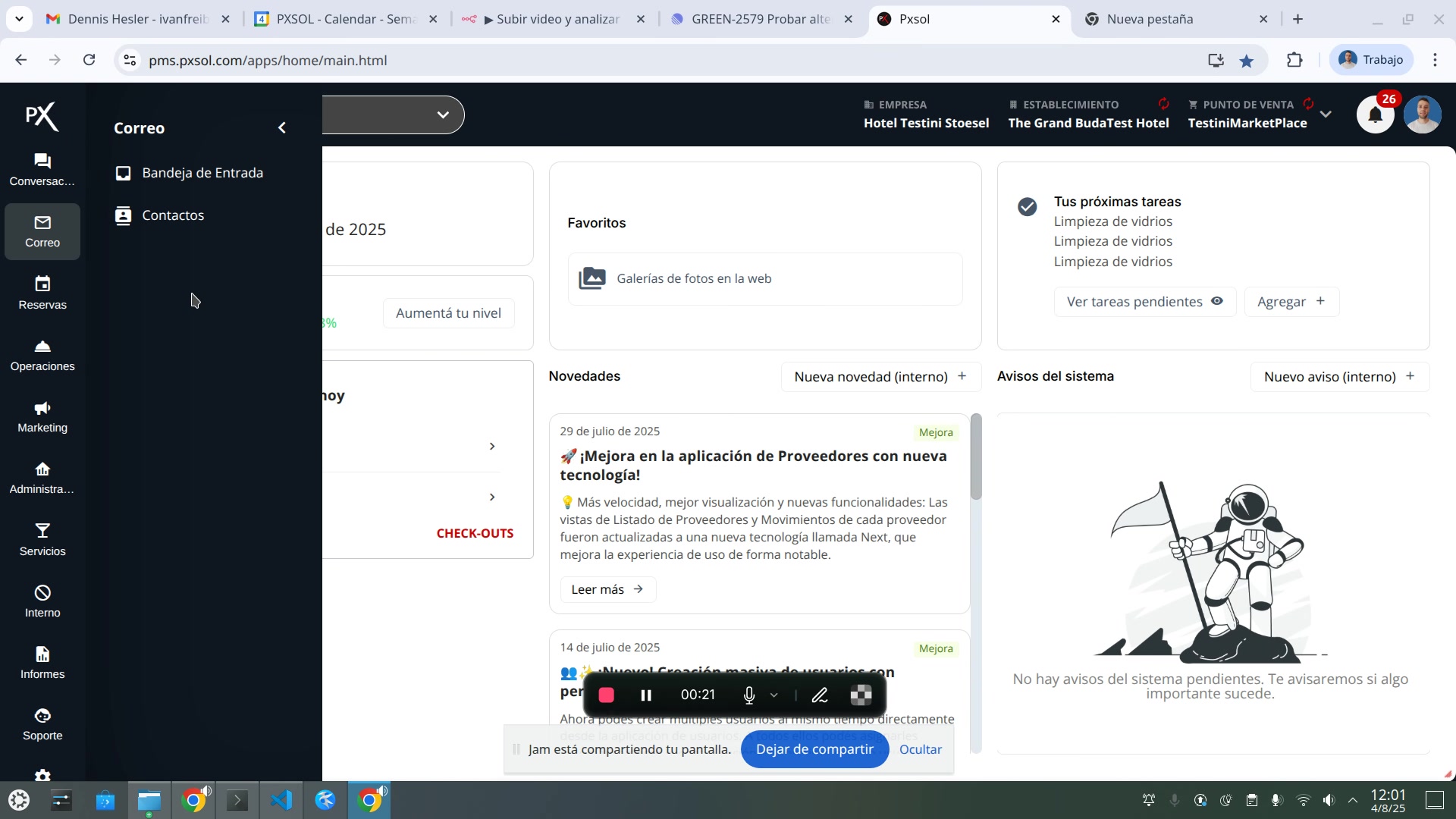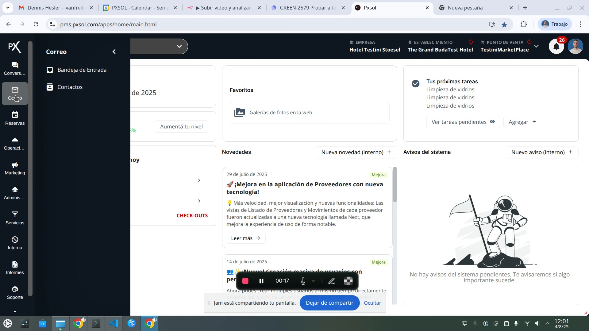 Menú de navegación con la opción Correo resaltada.