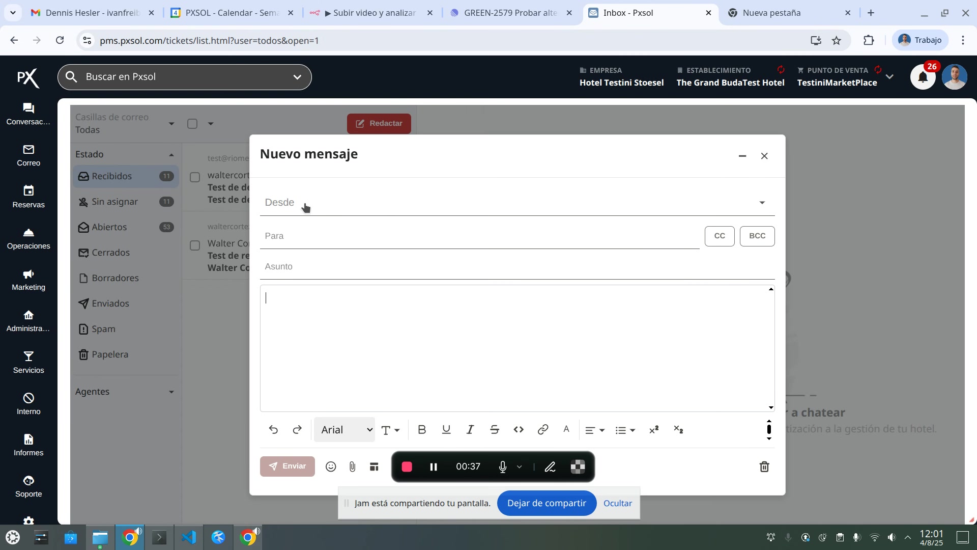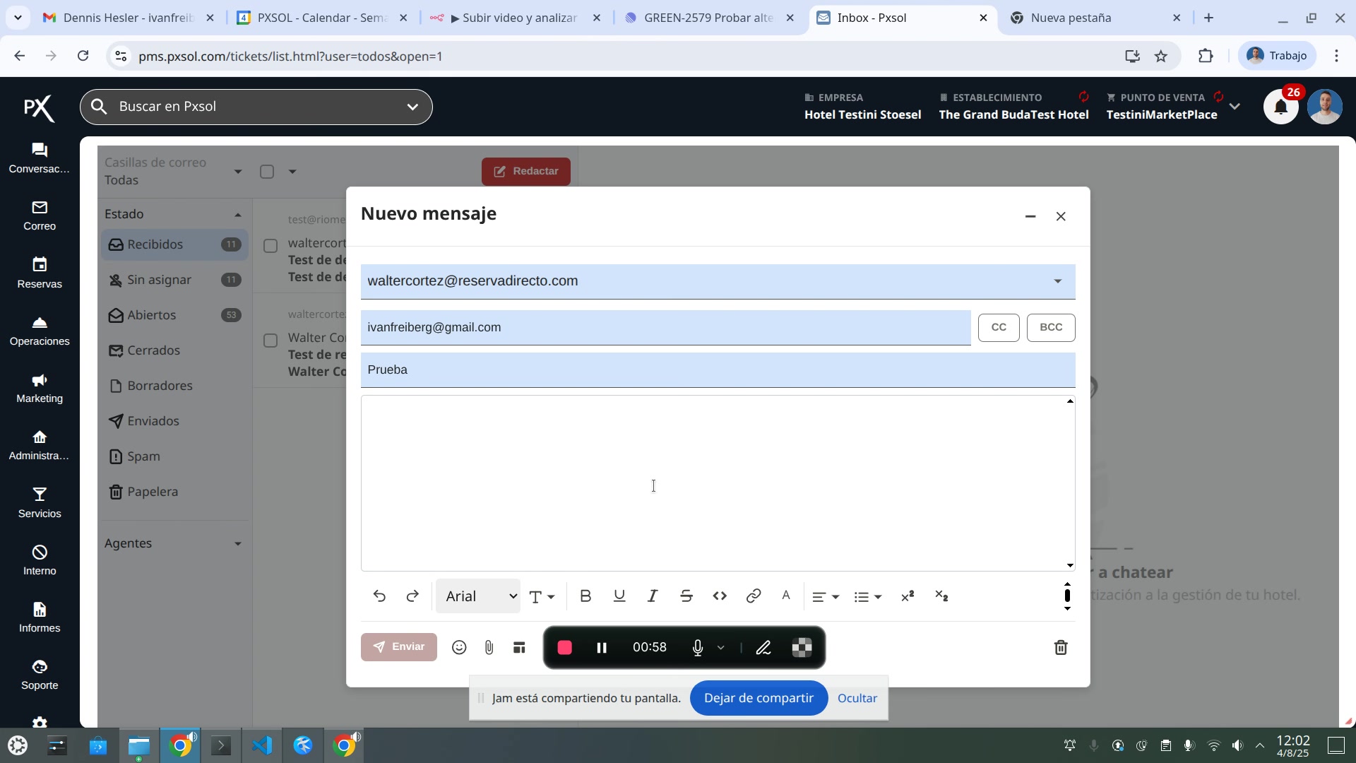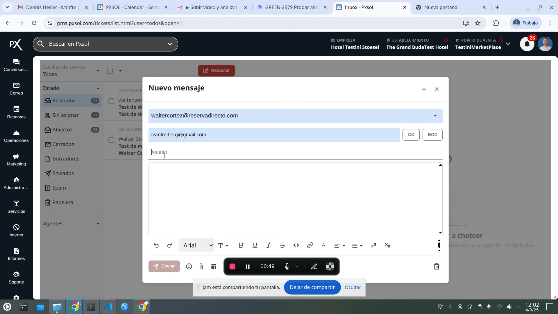 Campo 'Asunto' del correo siendo completado.