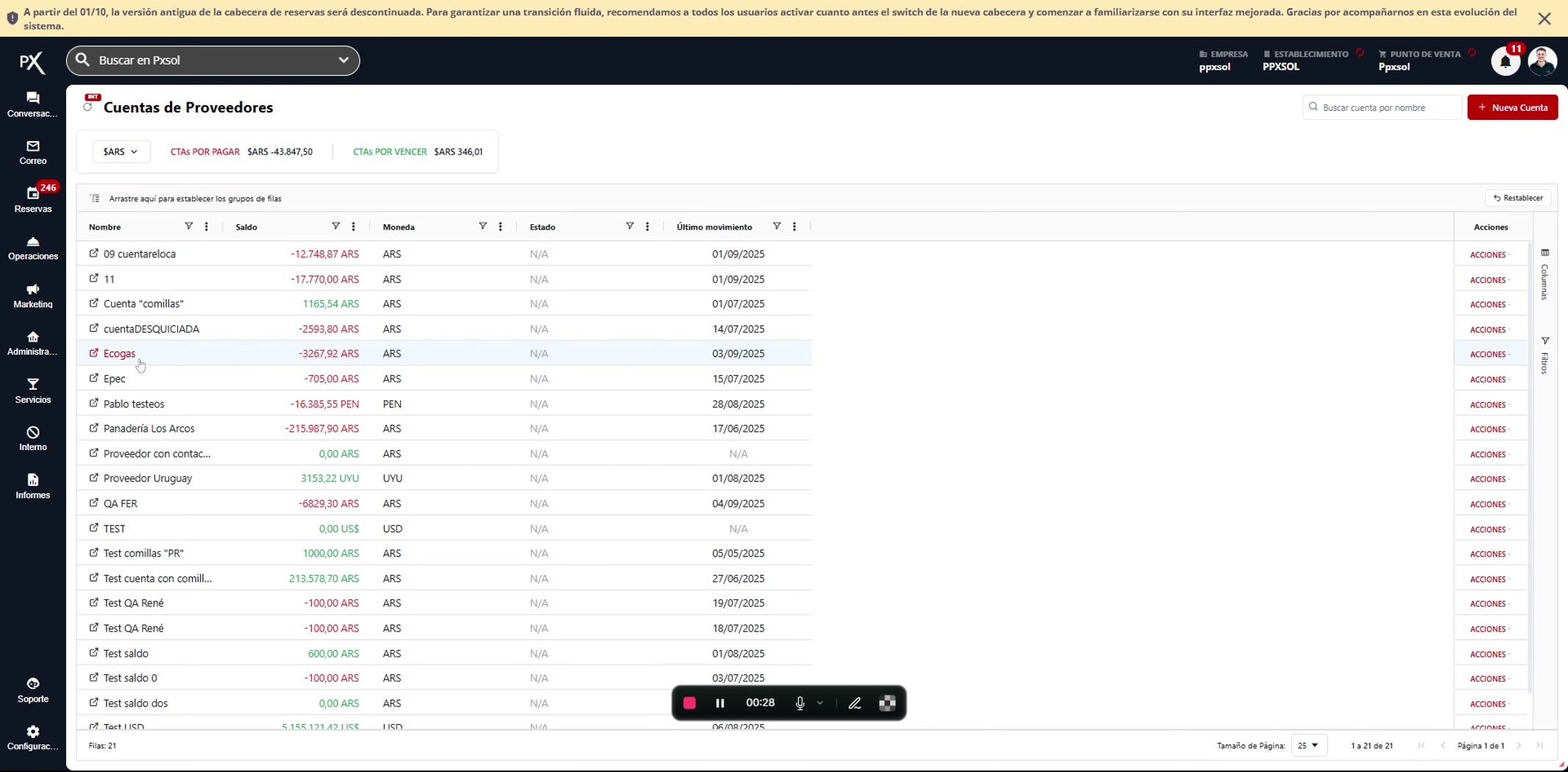 En la lista de “Cuentas de Proveedores”, elige la cuenta asociada a la factura que deseas anular.
