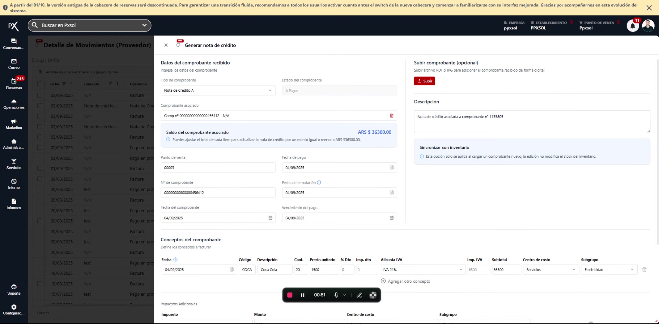 Esta guía explica el proceso de registrar una nota de crédito emitida por un proveedor para anular una factura ya cargada en el sistema. Al generar la nota de crédito desde la factura, ambos comprobantes se vinculan y la deuda correspondiente a la factura se salda automáticamente.
