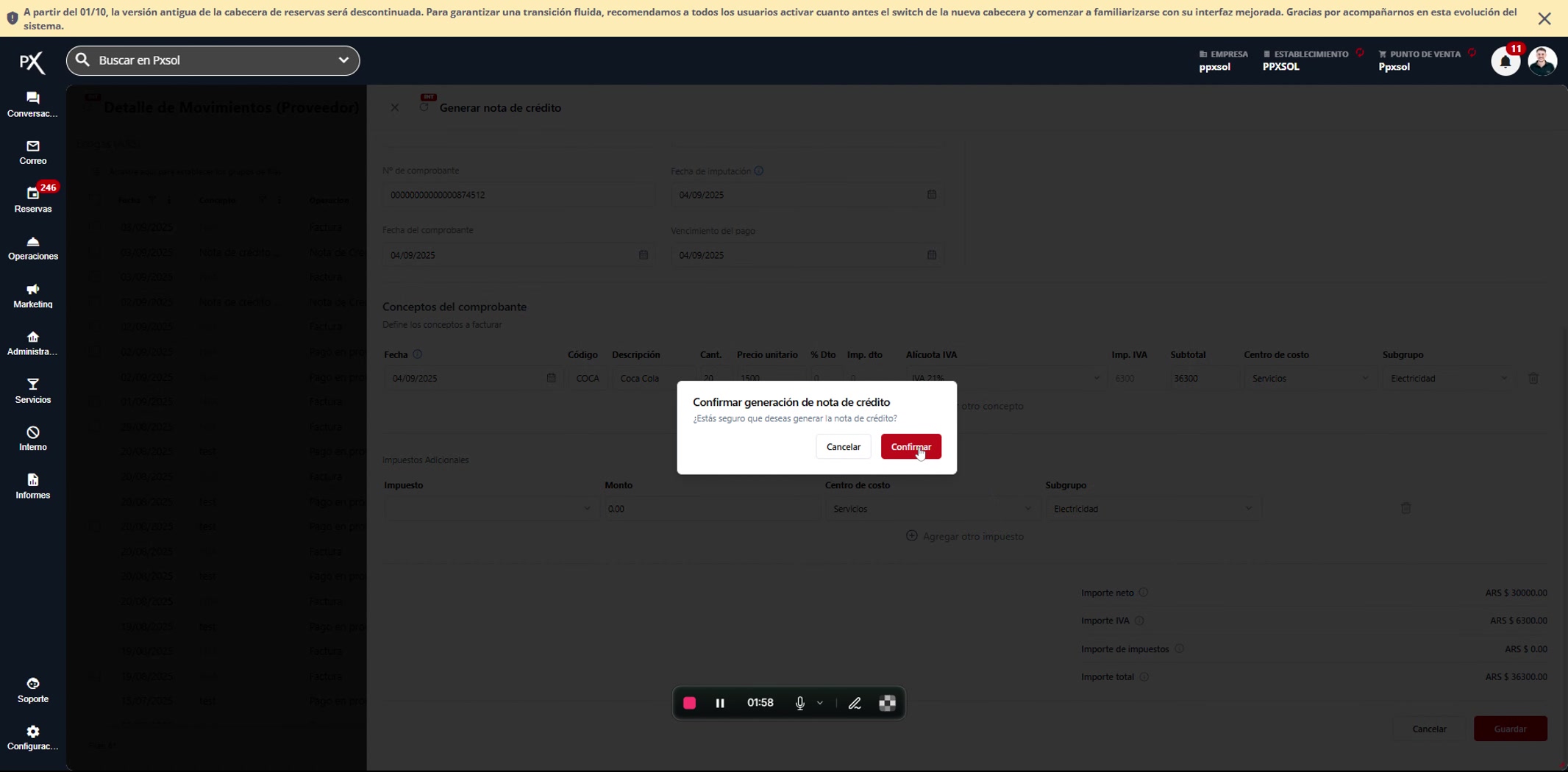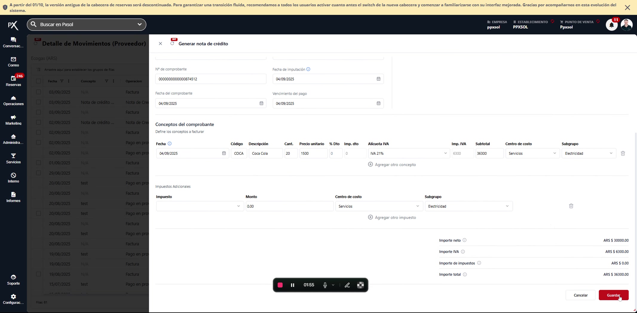 Presiona el botón “Guardar” para finalizar el registro de la nota de crédito.